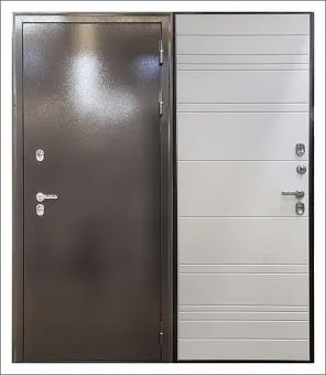 Дверь металлическая ТЕРМАЛЬ изготовлена с использованием технологии терморазрыва. Она имеет толщину дверного полотна 96 мм. Внешнее покрытие: атмосферостойкое порошково-полимерное "Медь". Внутреннее покрытие: белая матовая МДФ-панель. В качестве наполнителя используется комбинированный материал: пенополистирол + минеральная вата. Дверь оснащена тремя контурами уплотнения из вспененной резины. Два разносистемных замка обеспечивают защиту помещения от несанкционированного доступа.
